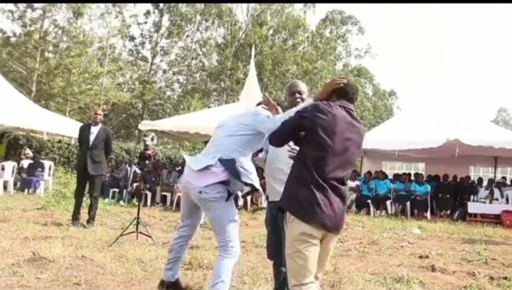 The commotion ensued where attendants intervened to stop the physical fist fighting till a gun shot is heard on the air to disperse the crowd